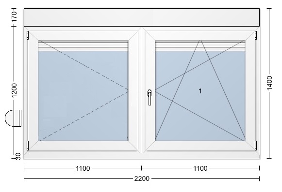 - 1100 mm = Fensterbreite (Rahmenaußenmaß)